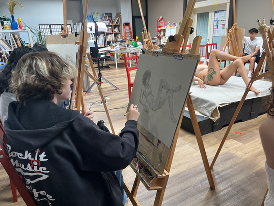 Therefore, we offer this summer's four-hour weekly workshop (five sessions, 30 hours total) to help fill this gap. Teachers closely monitor and guide students during these live model sessions. The portraits from the previous live model workshops were all used in our graduate students' college portfolios.